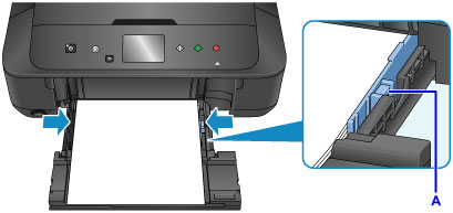 Slide the right paper guide (A) to align the paper guides with both sides of the paper stack.