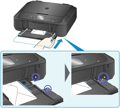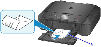 Slide the right paper guide (A) to align the paper guides with both sides of the envelopes.