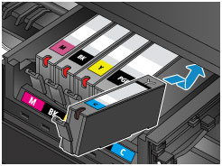 Fontos- Ha a tintatartály pozíciója nem megfelelő, nem lehet nyomtatni. Ügyeljen arra, hogy a tintatartályokat a nyomtatófej tartóján lévő címke szerinti, megfelelő helyre helyezze.