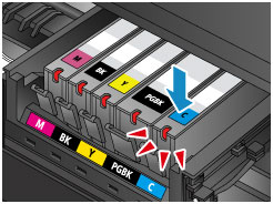 Nyomja le a tintatartály tetejét, amíg a tintatartály a helyére nem pattan.