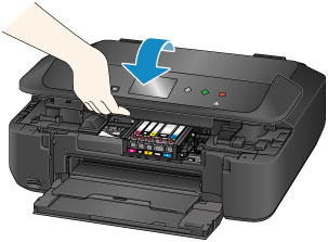 - Ha a nyomtató kezelőpanele több mint 10 percen keresztül nyitva van, a nyomtatófej tartója kitér jobbra. Ebben az esetben csukja le, majd nyissa fel megint a kezelőpanelt.