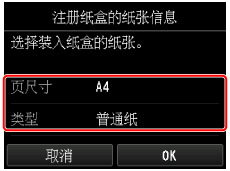 )对齐。推回纸盒后,触摸屏上显示纸张信息注册屏幕。