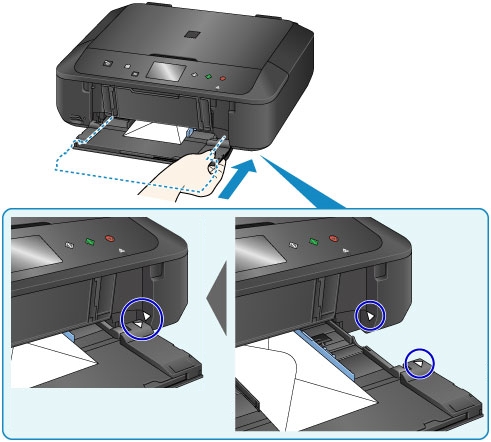 ادفع الأظرف بالكامل إلى الجزء الخلفي من الدرج.