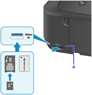 عند تركيب بطاقة الذاكرة بشكل صحيح، يضيء مصباح الوصول (Access) (A).