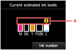 Niveles de tinta estimados (Estimated ink levels).Si hay alguna información sobre el nivel de tinta restante, aparecerá un símbolo en el área A.
