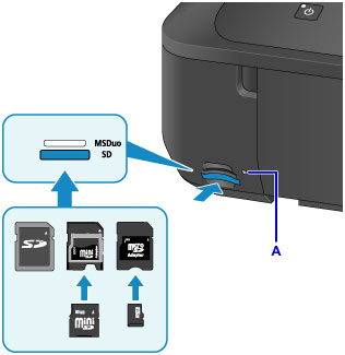 Ketika kartu memori dimasukkan dengan benar, lampu Akses(Access) (A) akan menyala.
