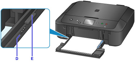 Hold høyden på papirbunken under tappene (E) på papirførerne.