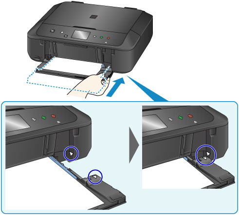 Legg i papir med liten størrelse, for eksempel 10 x 15 cm (4 x 6 tommer), ved å skyve det helt inn bak i kassetten.