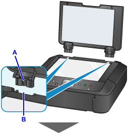 Sett begge hengslene (A) på dokumentdekselet loddrett ned i holderen (B) for å feste dokumentdekselet som vist nedenfor.