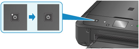 - Ko izključite napajalni kabel, pritisnite gumb VKLOP (ON), nato pa se prepričajte, da lučka za VKLOP (POWER) sveti. Če napajalni kabel izključite, ko lučka VKLOP (POWER) sveti ali utripa, se lahko tiskalna glava posuši ali zamaši, kakovost tiskanja pa se lahko poslabša.