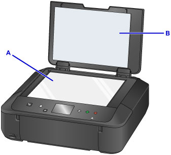 - Mặt trong của nắp tài liệu (tấm màu trắng) (B) rất dễ bị hư hại, vì vậy hãy lau thật nhẹ nhàng.