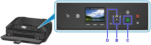 印刷用紙の設定を確認して、OKボタン(D)を押す