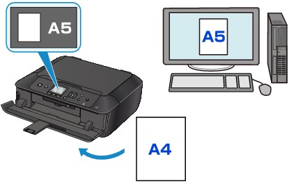 例えば、印刷やコピーするときの用紙サイズの設定がA5サイズで、カセットの用紙情報ではA4サイズと登録していた場合、A5サイズの設定のままカセットにセットされている用紙に印刷またはコピーします。