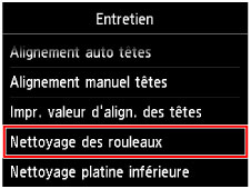 Dans ce cas, nettoyez le rouleau d'entraînement du papier. Dans la mesure où ce nettoyage use le rouleau d'entraînement du papier, n'effectuez cette opération qu'en cas de nécessité.