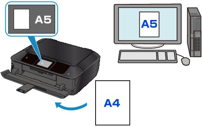 Par exemple, si le réglage de papier pour l'impression ou la copie indique A5 et que les informations concernant le papier dans la cassette enregistrées sur la machine indiquent A4, la machine lance l'impression ou la copie au format A5 sur le papier chargé dans la cassette.
