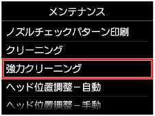 プリントヘッドのクリーニングを行っても効果がない場合は、強力クリーニングを行ってください。強力クリーニングは、通常のクリーニングよりインクを消耗しますので、必要な場合のみ行ってください。
