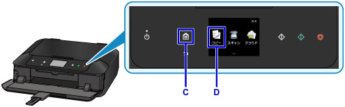 用紙の設定を確認して、モノクロ(Black)ボタンまたはカラー(Color)ボタン(G)をタッチする