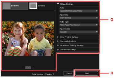 Noklikšķiniet uz ikonas Fotoattēlu drukāšana (Photo Print) (C).