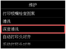 如果标准打印头清洗未改善打印质量,则深度清洗打印头。 深度清洗打印头比标准清洗打印头消耗更多墨水,因此请仅在必要时深度清洗打印头。