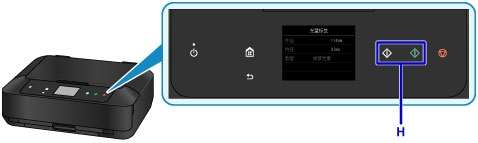 确认打印设置,然后触摸黑白按钮或彩色按钮(H)。