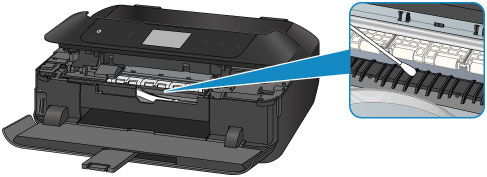 Om problemet kvarstår när du har rengjort bottenplattan igen är eventuellt de utskjutande delarna inuti enheten smutsiga. Torka av eventuellt bläck från de utskjutande delarna med en bomullstops eller liknande.