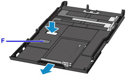 Suurema kui A4-suurusega paberi kassetti 2 laadimiseks vajutage kassetil 2 olev lukk (F) alla ja seejärel pikendage kassetti 2.