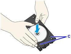 - Ketika menempatkan diska dapat dicetak pada tatakan diska, jangan menyentuh permukaan pencetakan diska atau reflektor (C) pada tatakan diska.