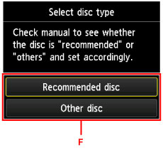 Pilih tipe diska yang dapat dicetak (F) dengan mengetuknya.