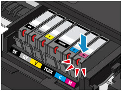 - Du kan ikke skrive ut hvis ikke alle blekktankene er satt inn. Pass på at du setter inn alle blekktankene.