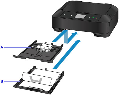 Pentru a încărca hârtia într-o casetă, încărcaţi hârtia CU FAŢA DE IMPRIMARE ORIENTATĂ ÎN JOS.