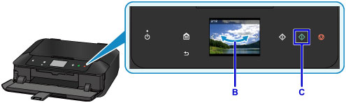Bläddra åt höger och vänster bland fotona (B) och välj ett foto.