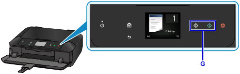ตรวจสอบการตั้งค่ากระดาษ แล้วแตะปุ่ม สีดำ(Black) หรือปุ่ม สี(Color) (G)