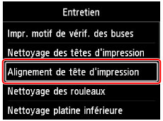 Sélectionnez Alignement de tête d'impression et appuyez sur le bouton OK.