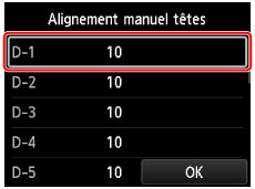 L'écran Alignement de tête d'impression s'affiche.