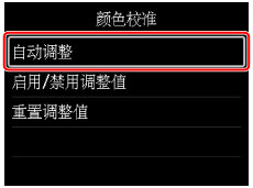- 要启用或禁用颜色校准调整值,请选择颜色校准屏幕上的启用/禁用调整值。