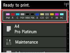 - Selecting Ink number displays the Ink number screen for checking ink tank numbers. Selecting Print no. on this screen enables you to print ink tank numbers.