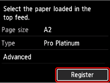 Muestra la información acerca del papel en la alimentación superior. Al seleccionar este elemento podrá especificar el tamaño y tipo de papel cargado en la alimentación superior.