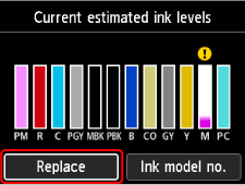 Появится экран Текущий прибл. запас чернил (Current estimated ink levels).