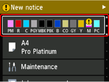 Yeni mürekkep kutusu takıldıktan sonra, LCD ekranda ilgili mürekkep lambası yanar.