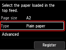 Üst beslemedeki kağıtla ilgili bilgileri görüntüler. Bu öğeyi seçerek üst beslemeye yerleştirilmiş kağıdın boyutunu ve türünü belirtebilirsiniz.