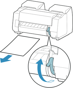 When instructions for removing sheet appear on touch screen, lift release lever while holding sheet, and remove sheet.