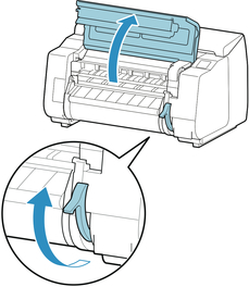 Öffnen Sie die obere Abdeckung und heben Sie den Freigabehebel an.