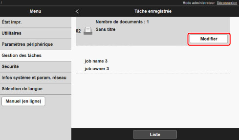La liste des tâches enregistrées s'affiche.
