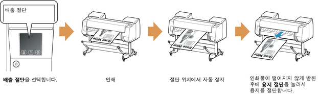 자동 절단 및 배출 절단은 프린터 드라이버에서 자동 절단 > 예를 선택한 경우에만 유효합니다.