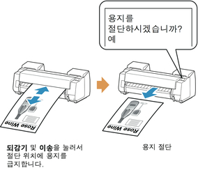 용지 절단(임의 위치에서 롤 용지를 절단하려는 경우)