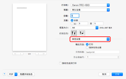 - 选择打印时,可结合使用该选项。 可以防止因打印作业接收中断或打印在中途中断而造成的打印质量下降。