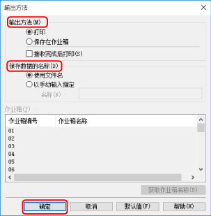 - 如果选择保存在作业箱,请从作业箱编号中选择个人作业箱编号。