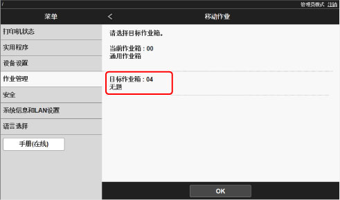 在目标作业箱列表上选择目标个人作业箱的名称或编号,然后在显示的屏幕上选择OK。