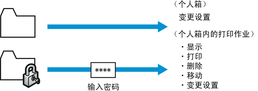 - 即使已设置密码,在远程用户界面的管理员模式下访问个人作业箱也不需要密码。