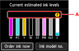 Pokud jsou k dispozici informace o zbývající hladině inkoustu, zobrazí se v oblasti A symbol.